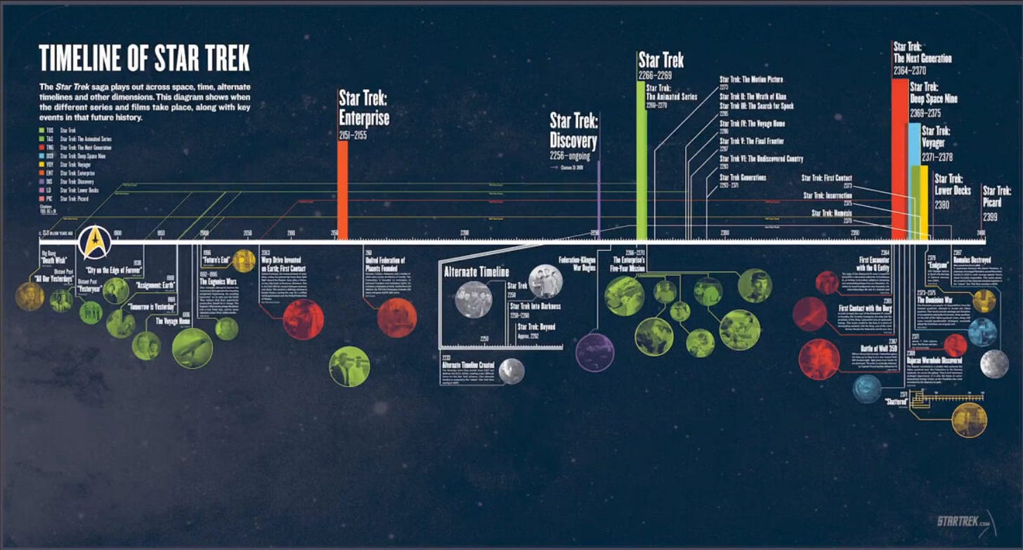 My interest is otherwise, viz.: whether it’s possible to extract a meaningful ‘theory of history’ from the multifarious, on-the-moment localised and centripetal, only-in-retrospect ‘will to coherence’ of Star Trek as a whole.
