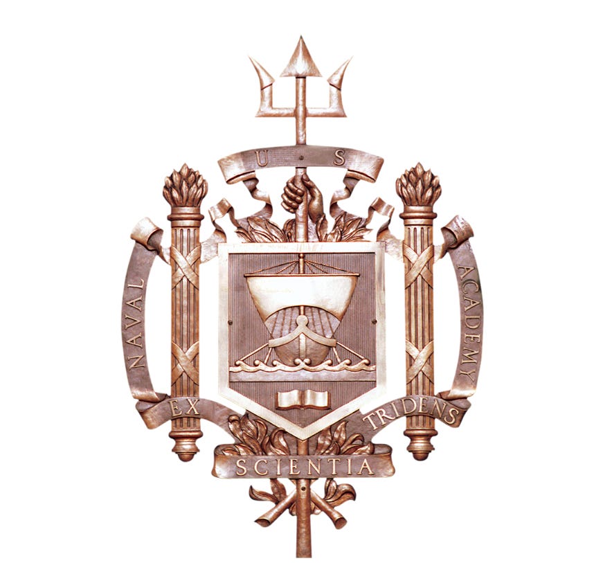 Both of these, the Apollo 13 and the USNA phrases, manifestly owe something to e pluribus unum, the official motto of the United States of America, as featured on its Great Seal. This takes the same shape: e (the Latin is ex if the word that follows begins with a vowel, but can be e if a consonant) ‘out of’, pluribus, ablative plural of plus, which in its plural form means ‘more, several, many’, and unum, the neuter nominative singular ‘one’. The recent show Pluribus of course makes reference to this, and Other-Adam had written on this very ’stack about that show’s relationship to Trek.